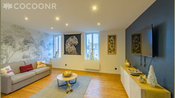 L'appartement est situé à 100m de toutes commodités en centre ville, boulangerie et commerces de proximité s'y trouvent, une jolie église, un centre ville accueillant et dynamique. Points culturels, forêts et lieux de découvertes à proximité ou à moins de 15 minutes en voiture.