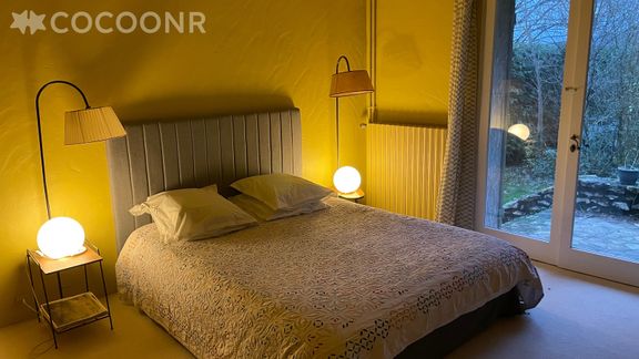 - Chambre 1 : avec 1 lit queen-size (160×200) et sa salle de bain (petit baignoire) attenante