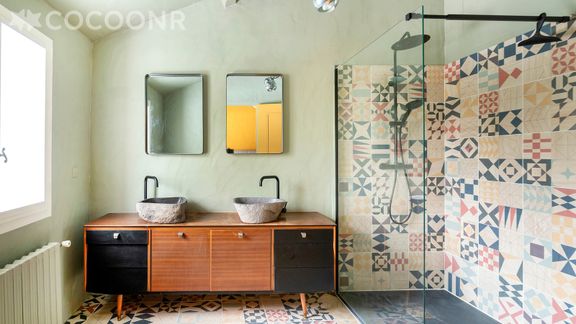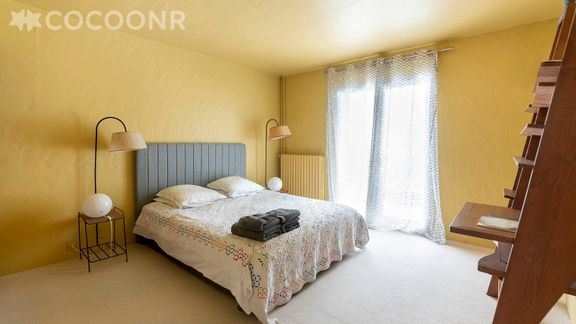 - Chambre 2 : avec 1 lit queen-size (160×200) et sa salle de bain (baignoire) à côté