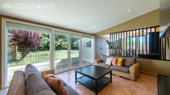 - Une pièce de vie de 35 m² avec TV, canapés...