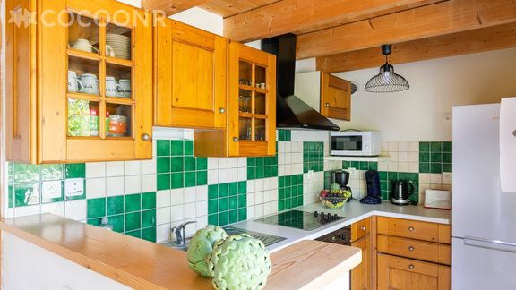 - Une cuisine ouverte équipée avec notamment : bouilloire électrique, four, four à micro-ondes, grille-pain, lave-vaisselle, plaques de cuisson, cafetière à dosettes Senseo et cafetière filtre...