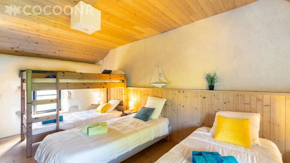 - Chambre 3 : un lit superposé et deux lits simples.