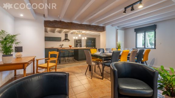 L'agence Cocoonr/Book&Pay vous propose à la location, à Terranjou, cette charmante maison d’une superficie de 200 m² et pouvant accueillir jusqu’à 12 voyageurs. Elle est composée de deux pièces à vivre, de deux cuisines équipées, de quatre belles chambres, de deux salles d'eau (avec douche) et vous pourrez profiter d’un jardin d’environ 248 m². Wifi, draps et serviettes inclus, nous n’attendons plus que vous !
