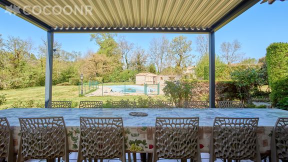 L'agence Cocoonr/Book&Pay vous propose à la location, à Thénac, cette charmante maison climatisée avec piscine, d’une superficie de 250 m² et pouvant accueillir jusqu’à 12 voyageurs. Elle est composée d’une jolie pièce à vivre de 60 m², d'une cuisine équipée, de six belles chambres, de deux salles d'eau (avec douche) et vous pourrez profiter d’un jardin d’environ 500 m². Wifi, draps et serviettes inclus, nous n’attendons plus que vous !