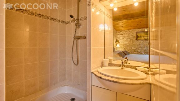 - Chambre 4 : avec 1 lit double (140×190), sa salle d'eau ouverte (avec douche, lavabo)