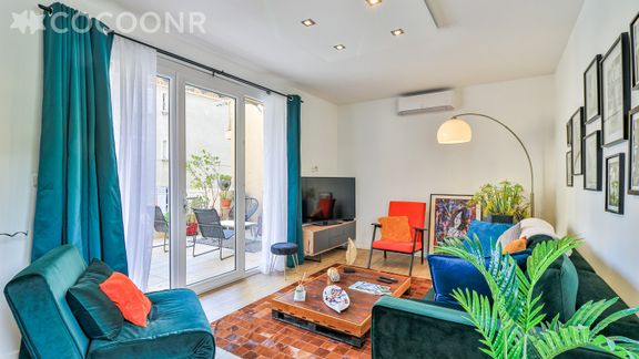 Au cœur d'un quartier agréable et dynamique, venez séjourner dans cet appartement lumineux où tous les espaces sont décorés avec goût. Vous disposerez ainsi d'un coin salon en contrebas de la cuisine avec accès à une grande terrasse, un coin salle à manger, d'une grande cuisine ouverte entièrement équipée, de deux chambres et d'une salle d'eau avec une douche à l'italienne. Place de parking privée. Draps et serviettes inclus.