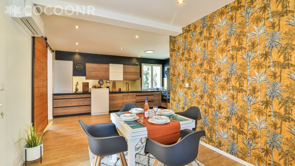 - Une salle à manger avec accès à la terrasse par une grande porte vitrée. Vous disposerez également d'un espace bureau dans la salle à manger.
