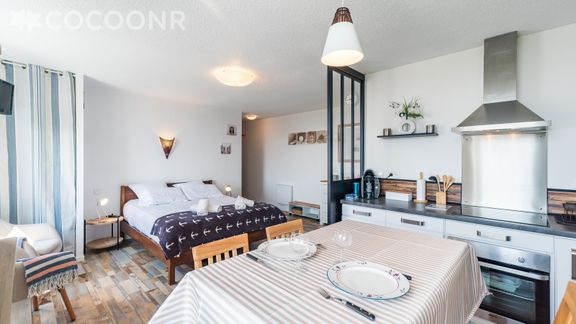 L'agence Cocoonr/Book&Pay vous propose à la location, à Trébeurden, ce charmant studio, à 750 m de la plage, d’une superficie de 33 m² et pouvant accueillir jusqu’à 2 voyageurs. Situé au 3ᵉ étage (sans ascenseur), il se compose d’une jolie pièce à vivre de 30 m², d'une cuisine équipée, un coin, et d'une salle d'eau (avec douche). Draps et serviettes inclus, nous n’attendons plus que vous !
