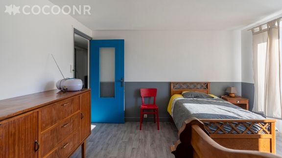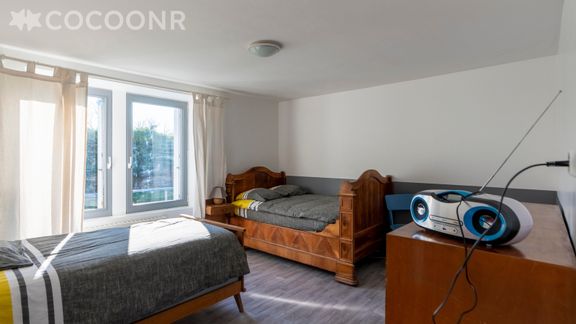 - Chambre 1 : lit double (140 x 190 cm), armoire, vue sur le jardin