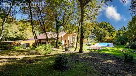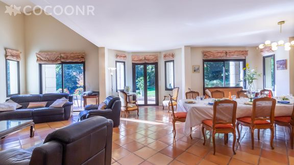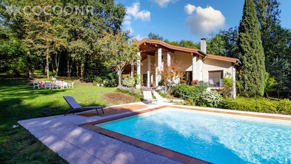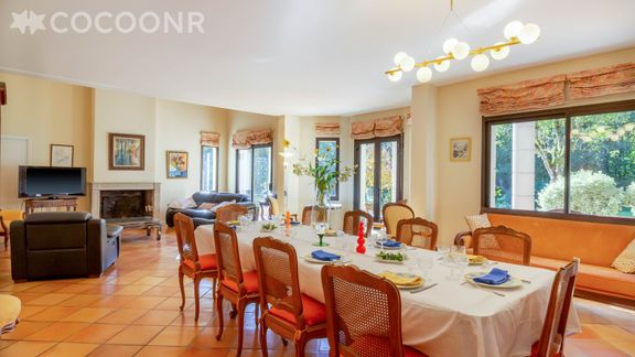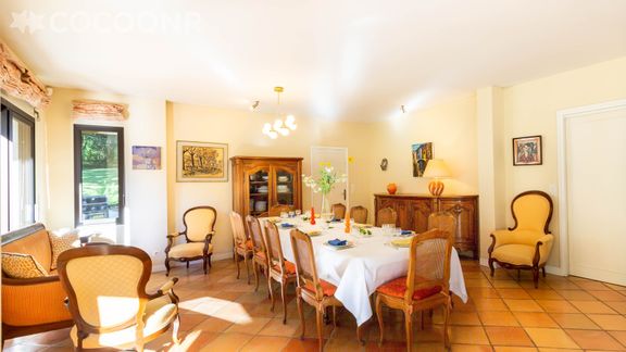 L'agence Cocoonr/Book&Pay vous propose à la location, à Trélissac, cette charmante maison climatisée avec piscine intérieure et extérieure, d’une superficie de 290 m² et pouvant accueillir jusqu’à 10 voyageurs. Elle est composée d’une pièce à vivre de 56 m² (avec cheminée), d'une cuisine équipée, de cinq chambres, de deux salles d'eau (avec douche), de trois salles de bain (avec baignoire) et vous pourrez profiter d’un jardin d’environ 2,7 hectares. Wifi, draps et serviettes inclus, nous n’attendons plus que vous !