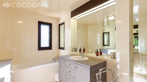 - Une piscine privée et chauffée de 13 x 5 m² protégée par un volet roulant