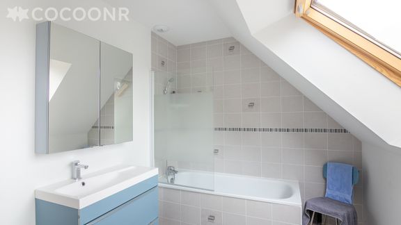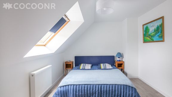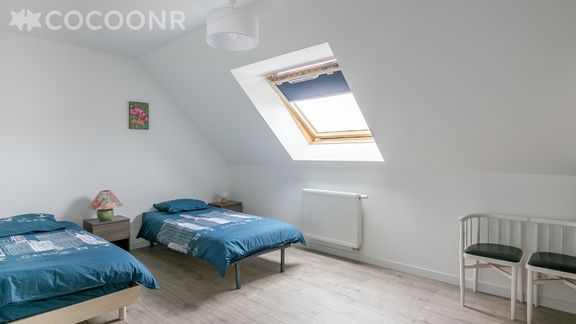 - Chambre avec un lit simple 90 x 190 cm et un lit gigogne (90 x 190 cm), soit trois couchages. Idéale pour les enfants.