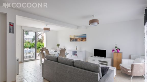 - Cuisine ouverte sur le salon, entièrement équipée : plaques, four, micro-onde, frigidaire, bouilloire, cafetière, lave-vaisselle...