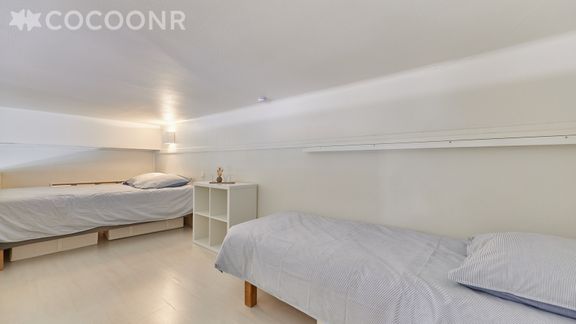 - Un coin nuit avec un lit queen-size (160×200) et un lit simple