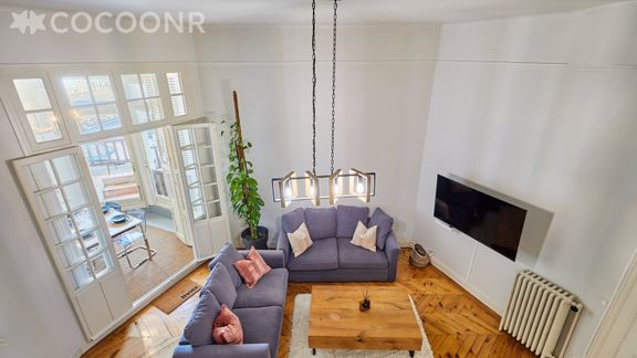 Par temps gris l’appartement peut être un peu sombre mais ce n’est pas non plus dérangeant. Attention en revanche à ne pas être trop grand avec la mezzanine, assez basse de plafond mais cela reste correct car il s’agit du coin nuit.