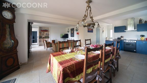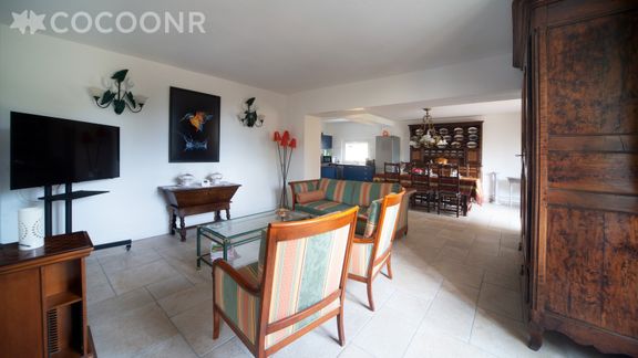 - Une pièce de vie de 40 m² avec TV, canapé, fauteuils, espace repas
