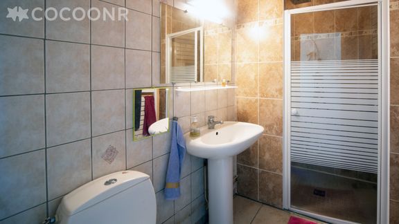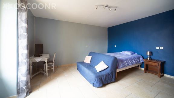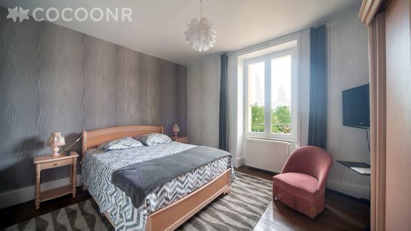 - Chambre 3 : un lit double (140×190), fauteuil, TV
