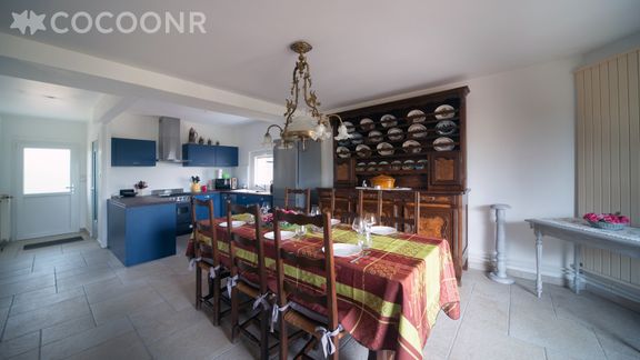 - Une cuisine équipée avec notamment : bouilloire électrique, four, four à micro-ondes, grille-pain, lave-vaisselle, plaques de cuisson...