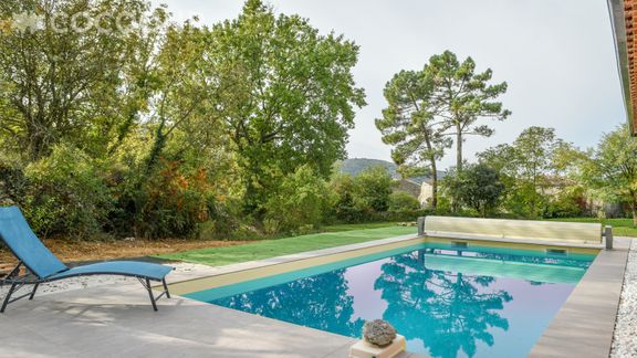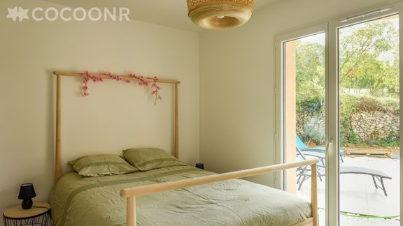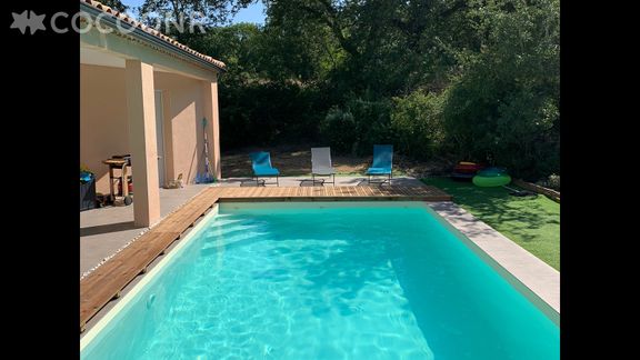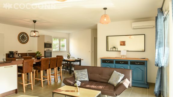 Nous vous proposons à la location, sur la commune de Vallon-Pont-d'Arc, cette charmante maison de plain pied, climatisée, à moins d’un kilomètre de la plage, avec piscine, d’une superficie de 116 m² et pouvant accueillir jusqu’à 8 voyageurs. Elle est composée d’une jolie pièce à vivre de 50 m², d'une cuisine équipée, de quatre belles chambres, de deux salles de bain, et vous pourrez profiter d’un jardin d’environ 400 m². Wifi inclus, nous n’attendons plus que vous !