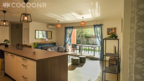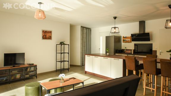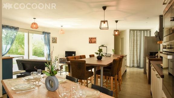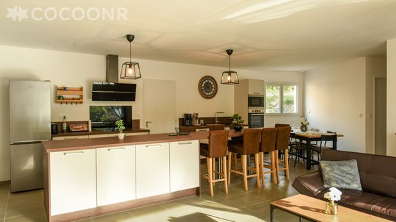 Le grand salon et la cuisine très bien équipée sont parfaits pour partager des moments conviviaux.
