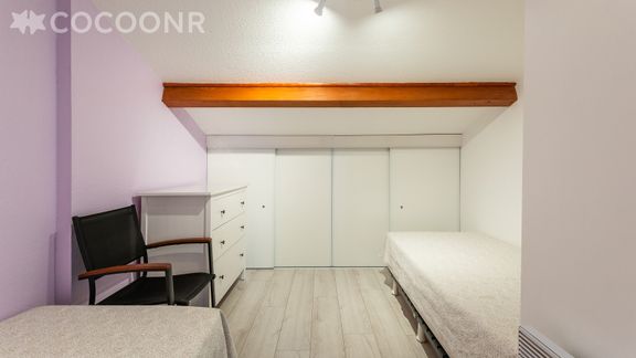 - Chambre 1 : avec un lit double (140x190) et un lit mezzanine (un couchage), d'une superficie de 7 m²