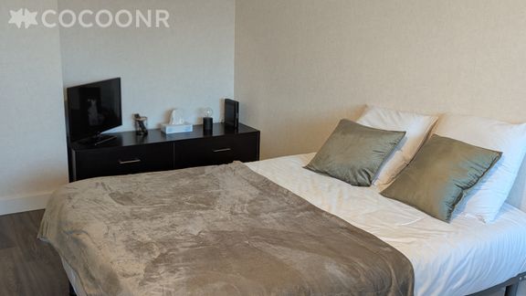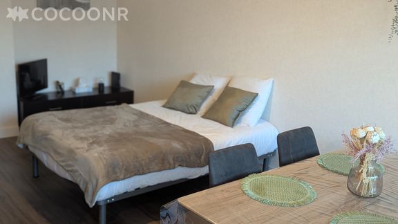 - Une pièce de vie de 25 m² avec un lit double (140x190), une TV.