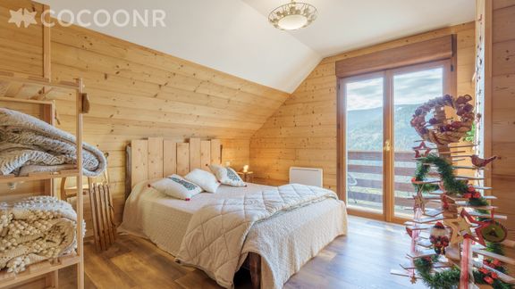 L'agence Cocoonr vous proprose à la location, ce charmant chalet avec vue montagne, situé sur les hauteurs de Ventron, à proximité de La Bresse et offrant un cadre exceptionnel pour un séjour relaxant dans les Hautes Vosges. Avec une superficie de 110 m² et une capacité d'accueil de 10 personnes (dont 2 enfants), il est parfait pour des vacances en famille ou entre amis.