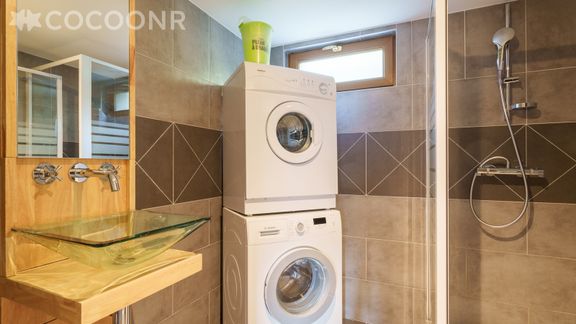 - Une salle d'eau avec douche, lave-linge, sèche-linge