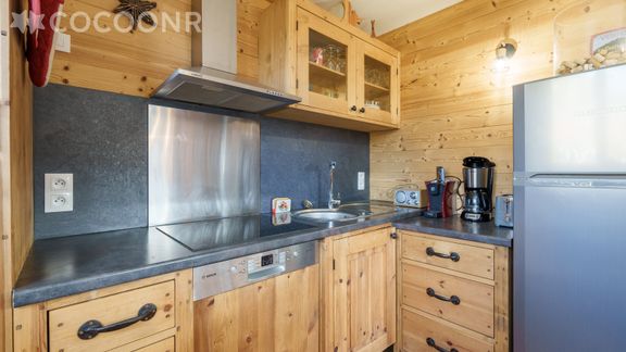 - Une cuisine équipée avec notamment : bouilloire électrique, four, four à micro-ondes, grille-pain, lave-vaisselle, plaques de cuisson...
