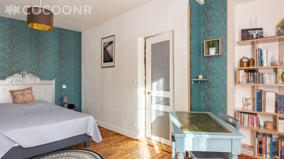 - Chambre 1 : Spacieuse, elle est composée d’un lit double en 140 x 190 cm, d'un dressing, bureau et bibliothèque.