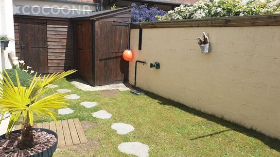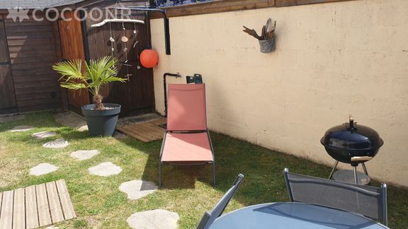 - Jardinet d'environ 60 m² entièrement clos, situé à l'avant de la maison, est aménagé avec un salon de jardin et quatre chaises pour profiter d'un repas en extérieur. Barbecue électrique, transats, chaises de plage et parasols sont également à disposition.