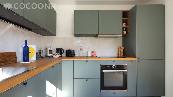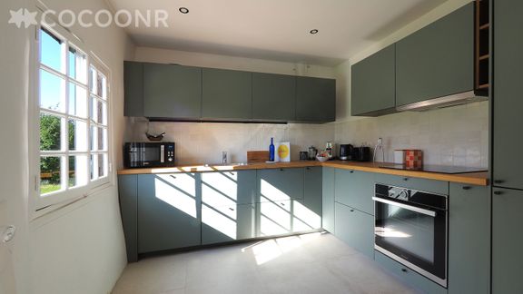 - Une cuisine équipée avec notamment : bouilloire électrique, four, four à micro-ondes, grille-pain, lave-vaisselle, plaques de cuisson...
