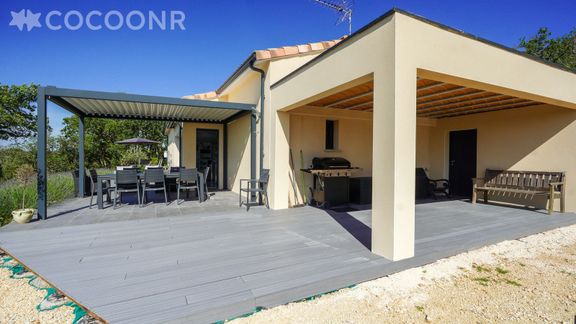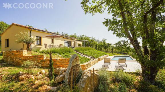 L'agence Cocoonr/Book&Pay vous propose à la location, à Vers, cette charmante maison neuve climatisée avec piscine privative. D’une superficie de 87 m² et pouvant accueillir jusqu’à 6 voyageurs, elle jouit d'une incroyable vue sur la Vallée du Lot. Elle est composée d’une jolie pièce à vivre de 40 m², d'une cuisine équipée, de trois belles chambres, de deux salles de bain et vous pourrez profiter d’un parc d’environ 5 000 m². Les draps et les serviettes sont inclus. Nous n’attendons plus que vous !