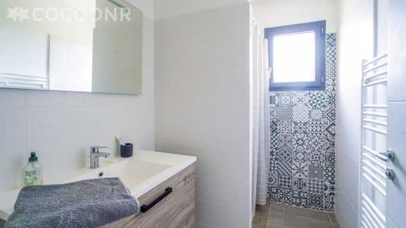 - Chambre 1 : suite parentale avec lit queen-size et salle d'eau attenante avec douche, bidet et WC privatif