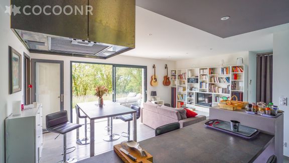 - Une pièce de vie de 40 m² avec TV, Wifi, canapé-lit double, bibliothèque et coin repas pour 6 personnes