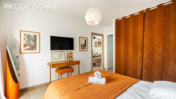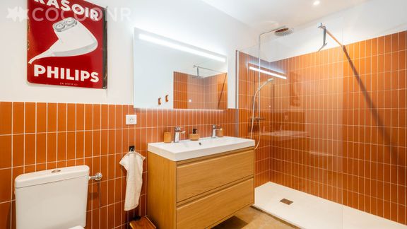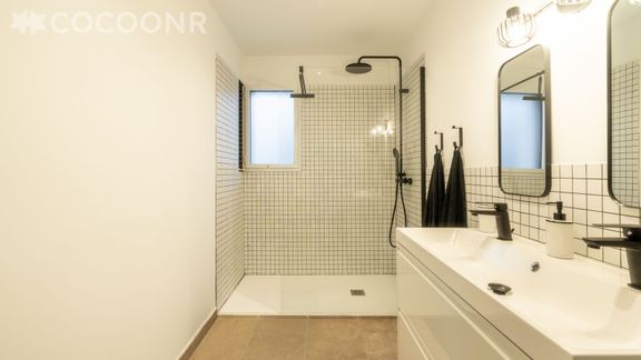 - Chambre 1 : avec un lit queen-size (160×200) et sa salle d'eau attenante (avec douche et WC)
