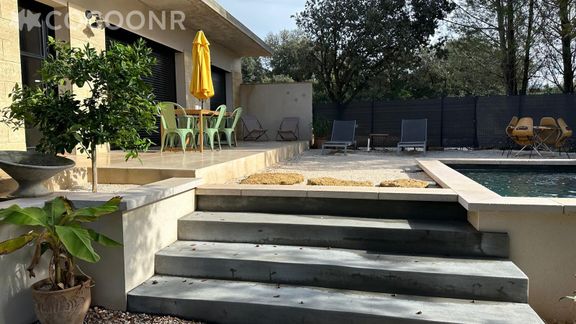 L’agence Cocoonr vous propose à la location, à Vers-Pont-du-Gard, cette charmante maison de plain pied, climatisée et avec piscine, d'une superficie de 100 m² et pouvant accueillir jusqu'à 6 voyageurs.