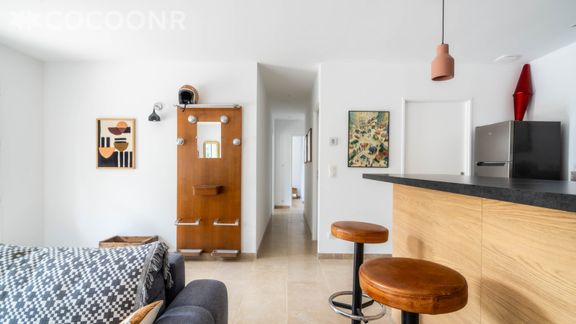 - Une pièce de vie de 40 m² avec TV, canapé et espace repas