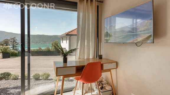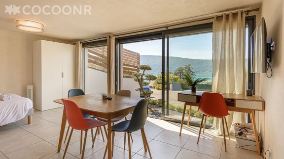 L’agence Cocoonr Annecy vous propose à la location le "Studio Sunrise", un beau studio contemporain idéalement situé sur les premières hauteurs de Veyrier-du-Lac. Situé au RDC d'une Villa en location elle-même, ce studio meublé, moderne et raffiné de 32 m² est idéalement situé, au pied du Mont Veyrier, sur la rive est du lac d’Annecy, avec une vue unique sur le lac.