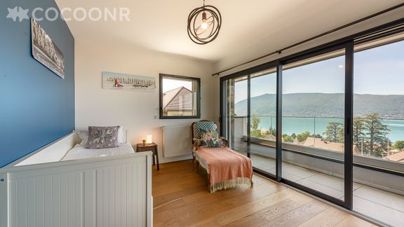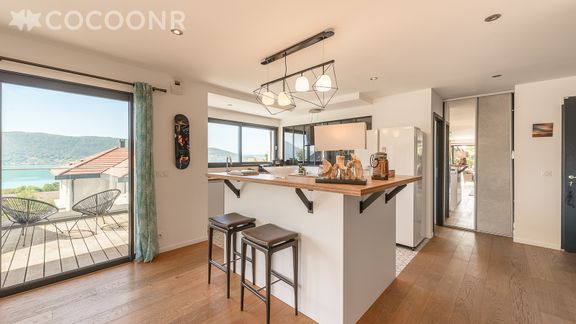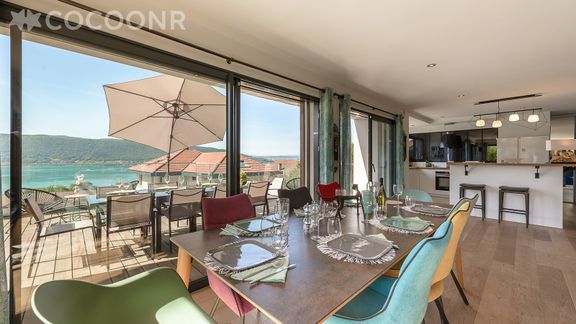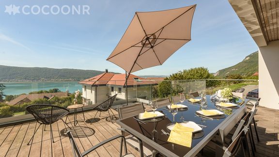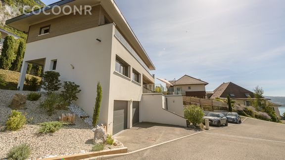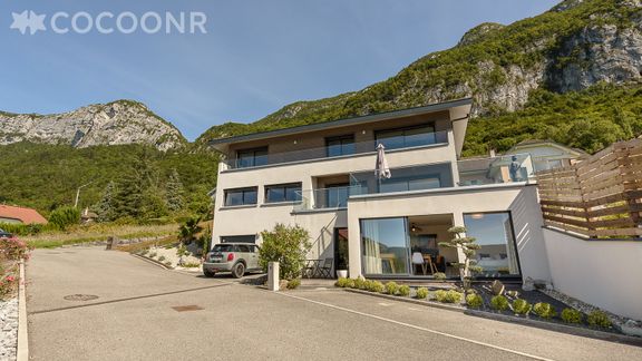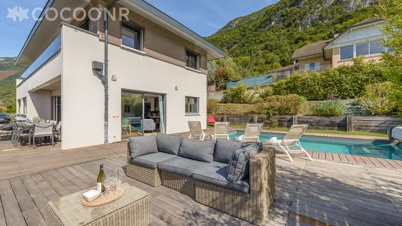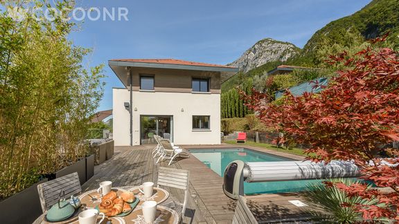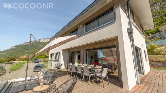 L’agence Cocoonr Annecy vous propose à la location la Villa Sunrise, une splendide maison contemporaine idéalement située sur les premières hauteurs de Veyrier-du-Lac.