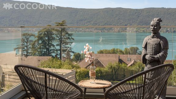 - Vue panoramique sur le lac depuis le balcon/terrasse.