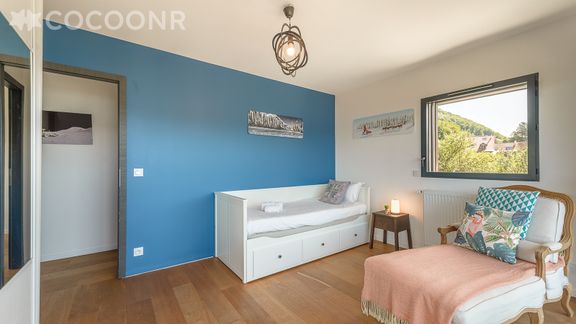 - Chambre 5 : un lit simple avec rangements intégrés.