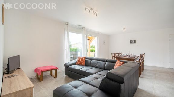 - Une pièce de vie de 45 m² avec TV, un canapé lit, un coin salon et un coin repas