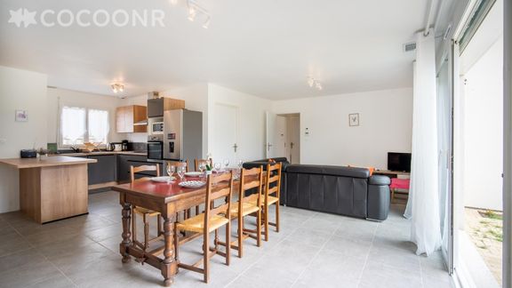 Nous vous proposons à la location, à Vielle-Saint-Girons, cette charmante maison de plain-pied climatisée d’une superficie de 83 m² et pouvant accueillir jusqu’à 6 voyageurs. Elle est composée d’une jolie pièce à vivre de 45 m², d'une cuisine ouverte équipée, de deux belles chambres, d'une salle d'eau et vous pourrez profiter d’un jardin d’environ 500 m².
