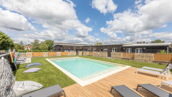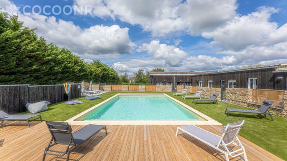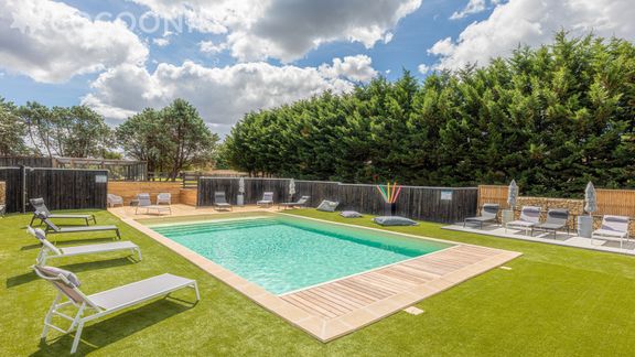 - Une piscine partagée et chauffée à 28° de 6 m x 11 m ouverte du 15 mai au 30 septembre, selon la météo (Dates d'ouverture non contractuelles)