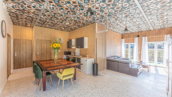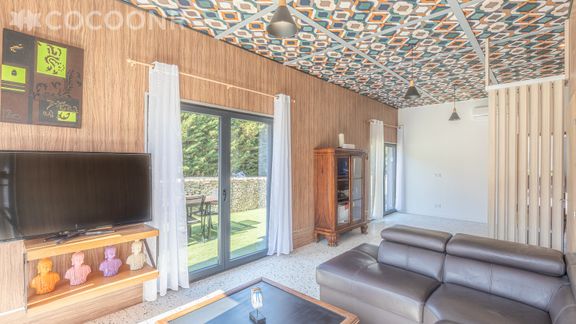 - Une pièce de vie de 33 m² avec TV, un coin salon et un coin repas