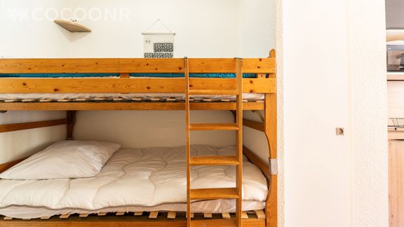 - Un lit superposé (2 lits simples) dans un coin montagne à l'entrée