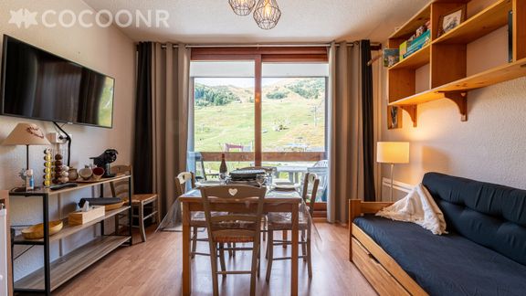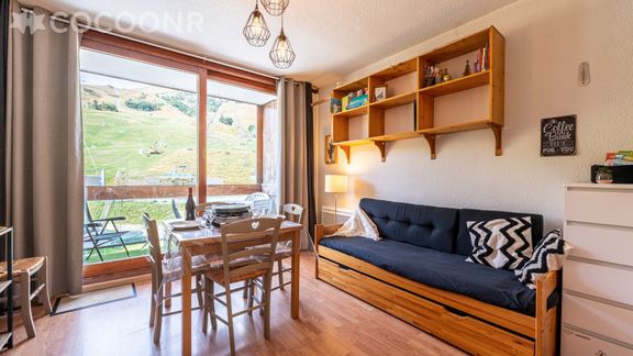 L'Agence Cocoonr/Book&Pay vous propose, sur la station Le Corbier, domaine Les Sybelles (136 pistes, 68 remontées mécaniques), ce studio en alcôve avec vue montagne, au pied des pistes à moins de 20 m de la principale remontée de la station (Sybelles Express), d’une superficie de 30 m² et pouvant accueillir jusqu’à 4 voyageurs. Situé au 2ᵉ étage (avec ascenseur), il se compose d’une jolie pièce à vivre de 30 m², d'une cuisine équipée et d'une salle de bain.