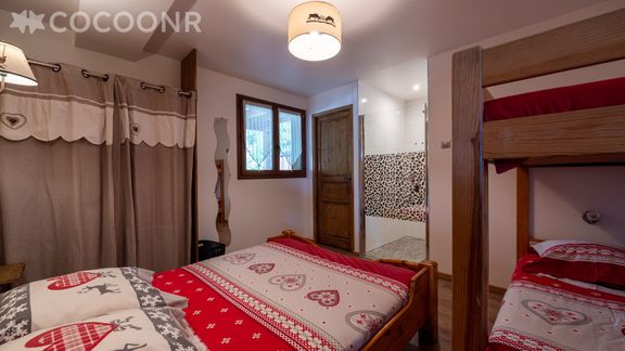 - Chambre 3 : chambre avec un lit double (140×200) et un un lit superposé (2 couchages)