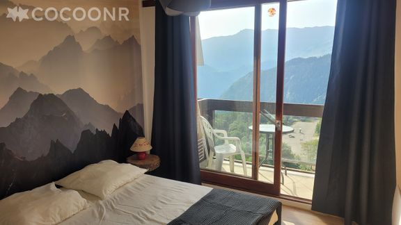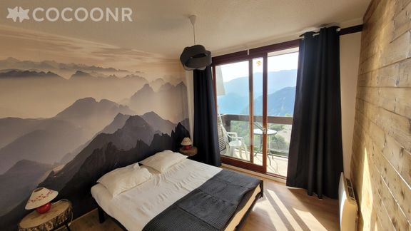 - Une grande chambre donnant sur un balcon exposition sud/est, vue sur la vallée avec un lit queen size(160×200)